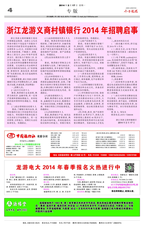 浙江龙游义商村镇银行2014......