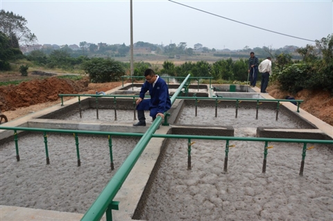 塔石镇童岗坞村童良兴的倶兴养猪场,6月份以来共投资60万元资金,把猪场内的污水采用管道统一接到污水处理池,再由十几台机器在4米多深的分格式处理池中分解工作,最后达标排放。