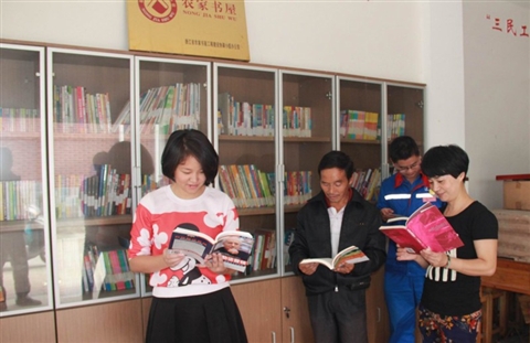 近年来,为深化“美丽乡村”建设,满足农村群众的文化需求,县农信联社出资助溪口镇石角村成立民生基金,用于民生项目开支外,还援助该村创建农家书屋,让更多的村民足不出村就能了解科技、金融等多方面知识,丰富村民的精神文化生活。图为村民在农家书屋看书学习。叶丹华 摄