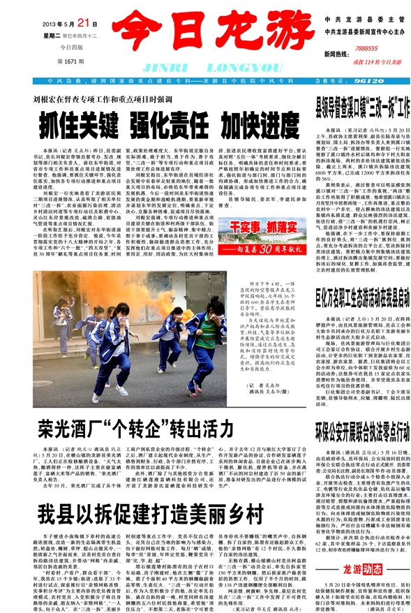 本报讯(见习记者 冯炜旭)5月20日上午,县政协主席黄利荣、副县长陆寿泉与县规划局、国土局、拆违办等负责人来到溪口镇督查“三改一拆”进展情况。督察组一行实地视察了溪口镇冷水村后垅坞和寺下村大阳家的拆违现场,两村的多处违法建筑被依法拆除。截止上周末,溪口镇共拆除违法建筑6800平方米,已完成12000平方米拆违任务的56%。